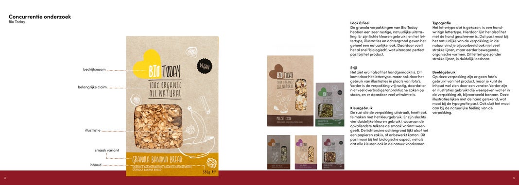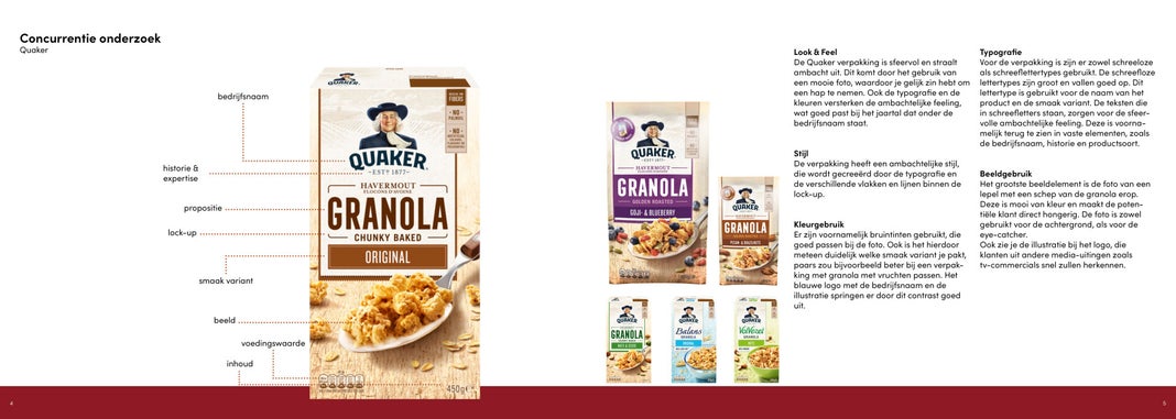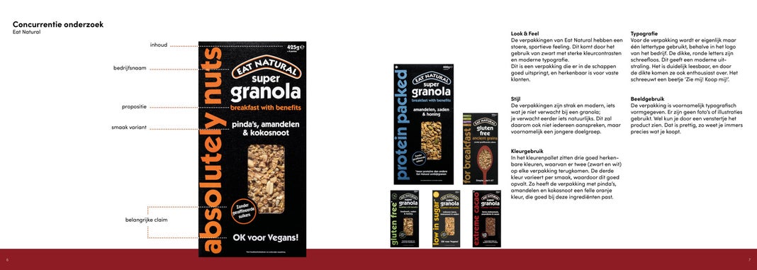 Bij mijn opleiding zijn er naast de vaste vakken ook keuzedelen. Dit zijn lessen van een halfjaar die je zelf kunt kiezen uit het aanbod. Ik koos voor Packaging Design, waarbij ik deze verpakking heb gemaakt. Ik leerde hier wat er allemaal op een verpakking hoort en hoe je dit het beste kunt vormgeven. We leerden dit aan de hand van een casus over granola. Het fictieve ontbijtmerk 'Tijd voor Ontbijt' van Albert Heijn wilde een nieuwe verpakking voor hun granola. Aan de hand van drie kernwaarden -bewust, gezond en lekker- moest er een ontwerpvoorstel worden gemaakt.