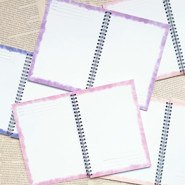 Het boekje heeft vijf warme, bij elkaar passende kleuren die doen denken aan een zonsopkomst. Het heeft een creatieve feeling door de verfranden. De lege ruimtes van het boekje zijn gevuld met lichte stippen zoals in een bullet journal. Op elke rechter pagina is er precies genoeg ruimte om een standaard fotoafdruk van 10 x 15 cm te plakken. Dankzij het kwalitatieve 160 grams papier drukt je inkt en lijm niet door op je pagina!