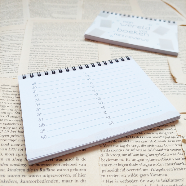 In het Mini reviews invulboekje van Mijn wereld vol boeken schrijf je over 50 boeken kort op wat je ervan vond. Aan het begin noteer je vlug wat jouw sterrenbeoordeling betekent en houd je een inhoudsopgave bij, zodat je altijd de review terugvindt van het boek dat je zoekt.